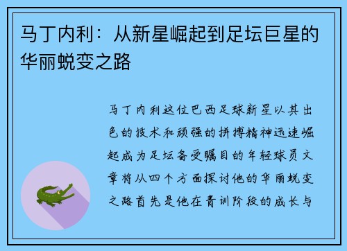 维尼修斯是当今足坛最耀眼的年轻球员之一,他以令人惊叹的速度和技术,迅速从一名足球新星成长为世界舞台上的璀璨之光。本文将对维尼修斯的职业生涯进行全面分析,从他的早期经历、在皇家马德里的发展、国家队的表现以及他在全球足坛中的影响力四个方面进行深入探讨。通过这些方面,我们不仅能够领略到他个人才华的闪耀,更能看到他如何在竞争激烈的足球世界中脱颖而出,成为广大球迷心目中的偶像。维尼修斯不仅代表了新的足球潮流...